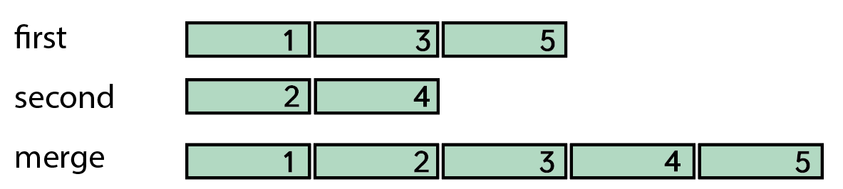 * 병합 알고리즘(Merge Algorithm) : 오름차순으로 정렬되어 있는 정수 배열을 하나로 병합